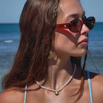 The feeling of a never ending vacation, crafted into a frame. Our Vacay frames are the perfect sleek oval shape that suits every face, each side decorated with our signature shell logo in a gold charm. Designed so you feel at ease and by the sea everywhere you go.